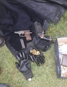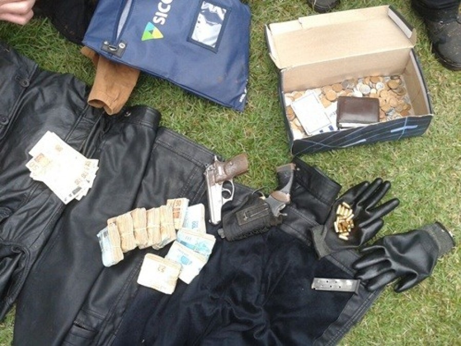 A Polícia Militar de Salto do Lontra em conjunto com a Polícia Civil prendeu um suspeito de praticar um assalto na manhã desta quinta-feira (01). A vítima informou a Polícia Militar que por volta das 9 horas um assaltante rendeu ele e seus familiares e exigiu certa quantia em dinheiro para pagar o resgate. Os familiares ficaram mantidos como reféns enquanto a vítima providenciou o dinheiro. Após pegar o dinheiro o bandido fugiu em um veículo Gol de propriedade da família. Os policiais tentaram abordar o acusado, mas ele não obedeceu à ordem de parada e fugiu sentido a Comunidade de Linha Carmélia. Na entrada de acesso a comunidade foi avistado um veículo GM/Vectra Hatch cor prata estacionado de forma suspeita. A equipe continuou o acompanhamento ao veículo Gol e em determinado momento o suspeito efetuou dois disparos de arma de fogo contra a viatura que foi revidado pelos policiais. O acusado seguiu até a Linha São Valentim, abandonou o Gol, roubou uma VW/Saveiro branca em uma mercearia, continuou a fuga e abandonou a Saveiro na saída para Nova Esperança do Sudoeste. Em continuidade as buscas foi localizado o Vectra avistado anteriormente na garagem de uma residência as margens da rodovia. Durante buscas na residência foi localizado um par tênis molhado e sujo de barro, uma calça molhada e suja, uma camisa escura com capuz, uma jaqueta de couro e luvas, vestes compatíveis com autor do roubo. Em um dos cômodos foi encontrada uma pistola e um revolver. No sofá dentro de um malote foi encontrado o dinheiro do roubo. O acusado foi preso e informou que o condutor do Vectra havia o auxiliado no assalto. Os dois foram encaminhados a delegacia de Polícia Civil de Salto do Lontra para os demais procedimentos.