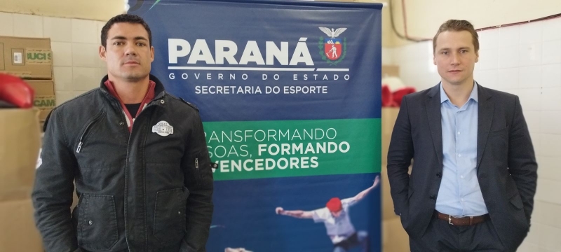 O Secretário de Esportes Álter Ragadalli esteve em Curitiba para receber os materiais esportivos que incluem novos jogos de uniformes, bolas de futsal, handebol, basquete e para recreação, além de cones, kits de tênis de mesa e vários outros itens esportivos.