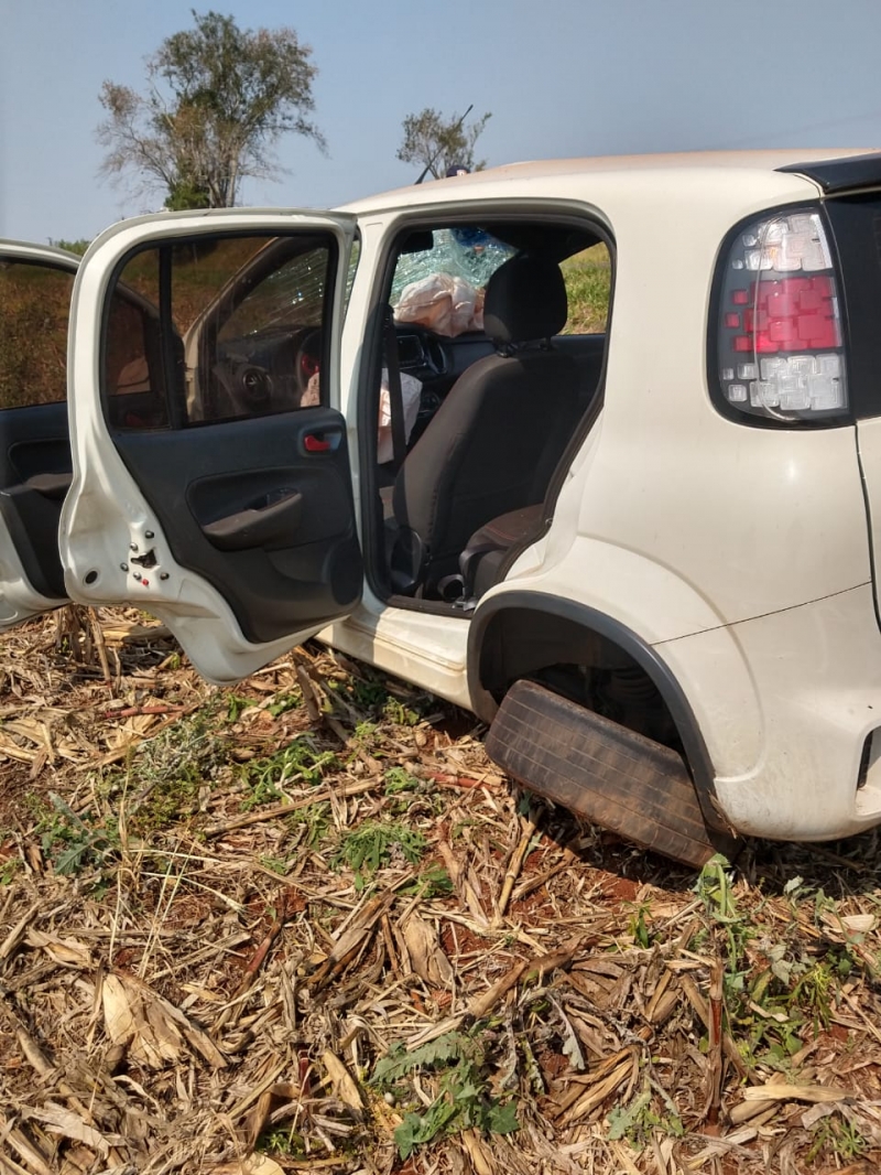 Uma jovem que conduzia um veículo Fiat uno, acabou perdendo o controle da direção e capotou antes de sair da pista.