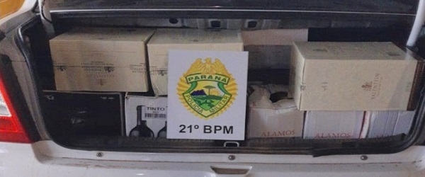 Durante vistoria realizada no veículo os policiais militares constataram que transportava 72 garrafas de vinho de procedência argentina. O condutor não apresentou documentação relativa ao desembaraço aduaneiro.