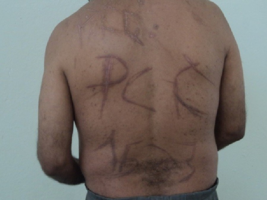 Nas costas do preso além da inscrição PCC duas vezes, também é possível ver o número 1533, que também representa a facção.