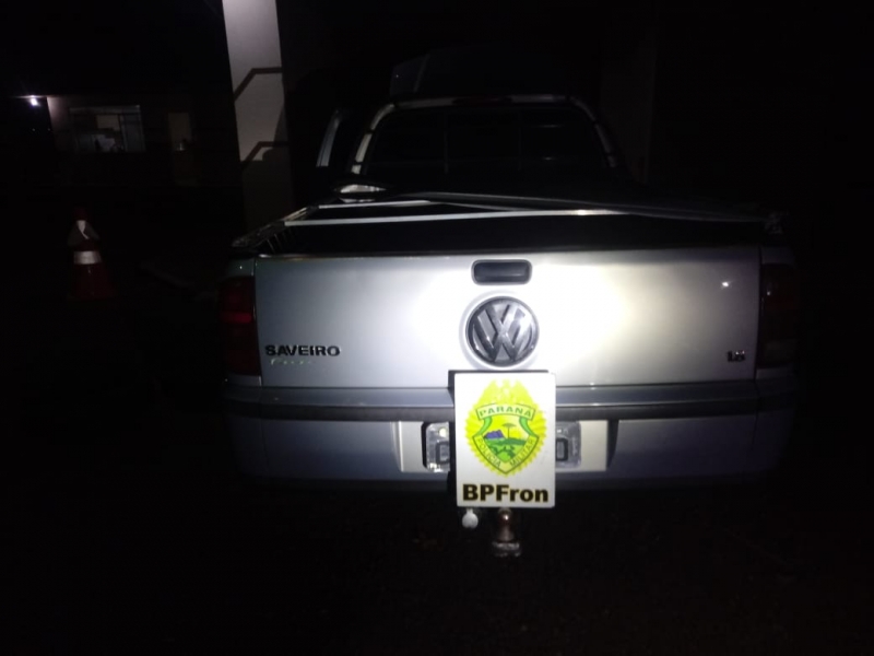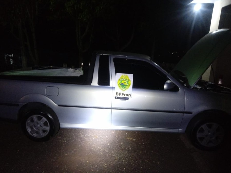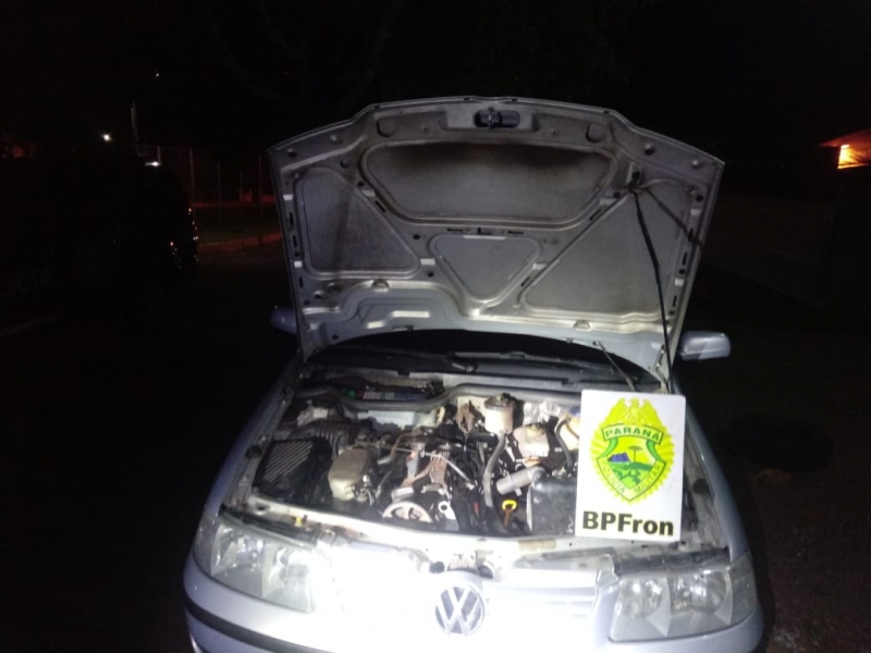 O veículo com valor estimado em R$14.000,00 estava sendo conduzido por um masculino morador da cidade de Cascavel-PR e foi abordado na cidade de Capitão Leônidas Marques-PR onde foi constatado que a placa ostentada não condizia com o chassis gravado no veículo porém sem registro de furto/roubo.
