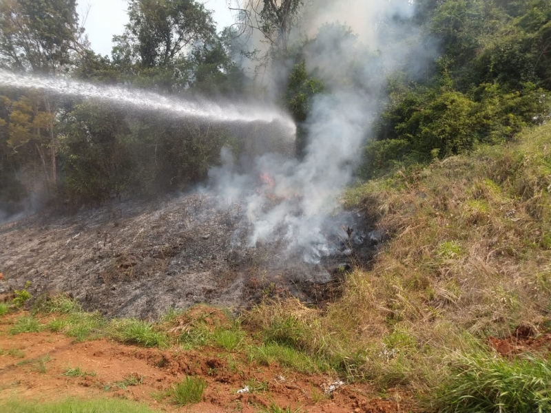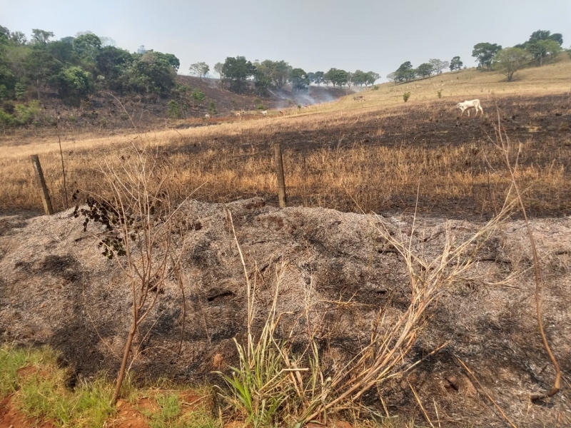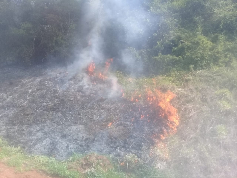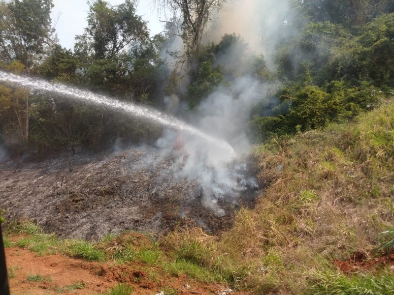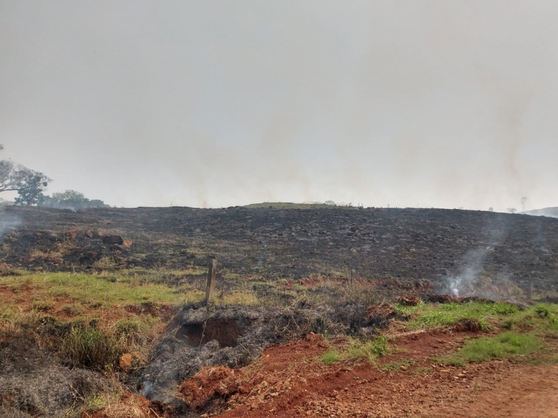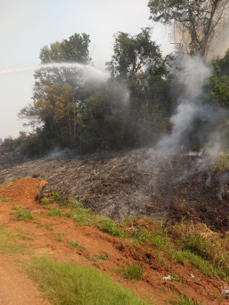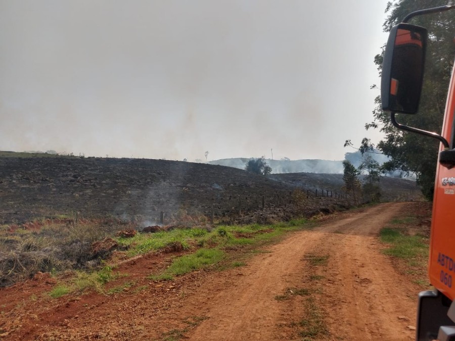 Após controlarem as chamas os bombeiros se deslocaram para a Linha Tangará, em outra fazenda que estava sendo atingida pelas chamas.