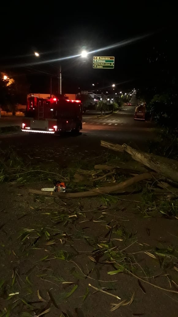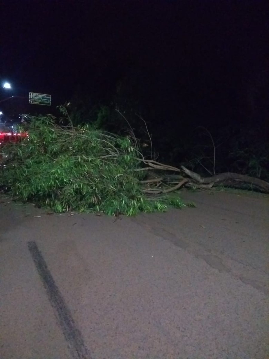 Chegando no local os bombeiros constataram se tratar de uma árvore de grande porte que após a queda acabou bloqueando parte da via.