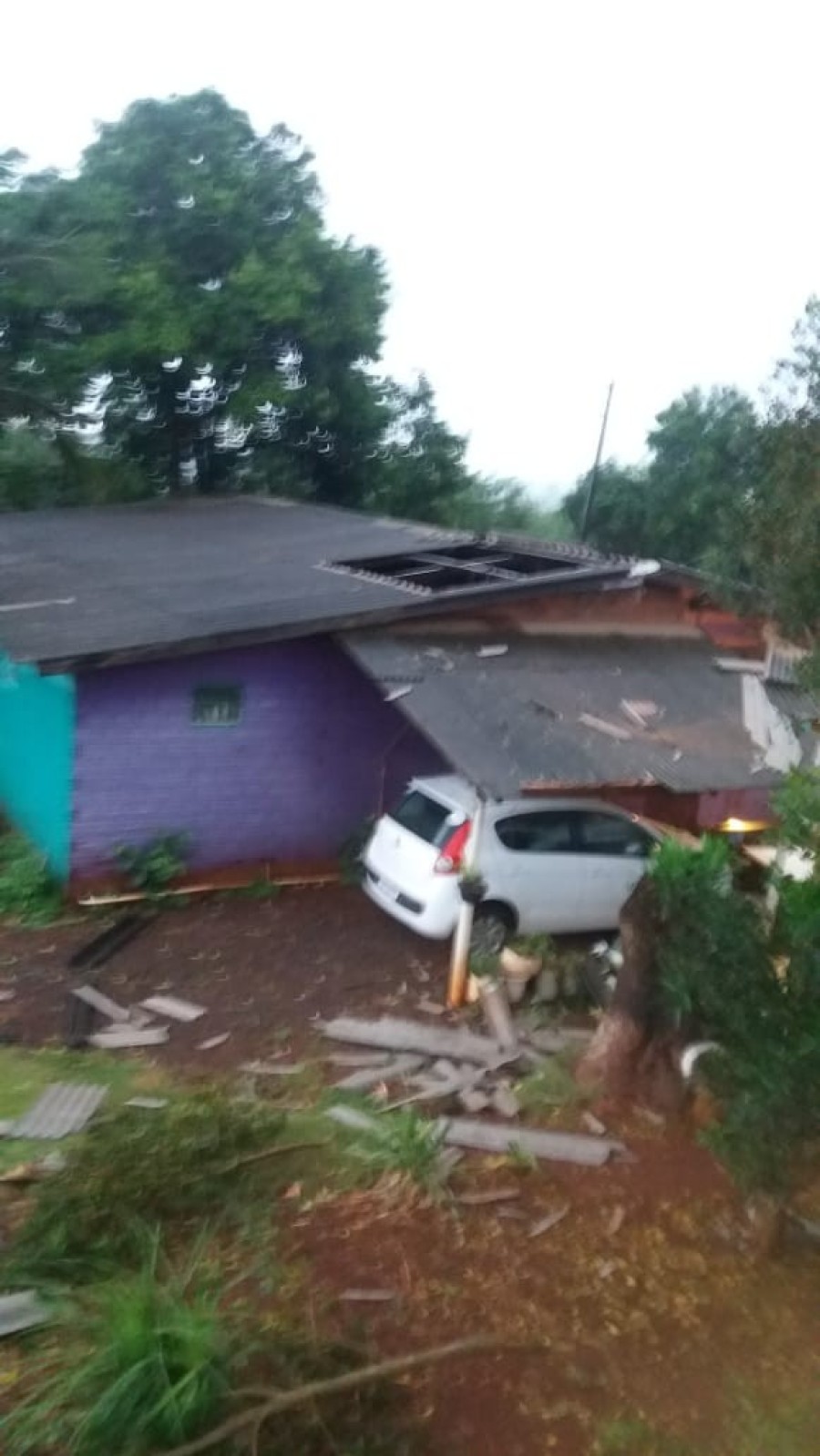 Houve danos materiais tanto na residência quanto em um galpão, além de ter atingido os veículos, onde com a força do vento até uma motocicleta foi derrubada.