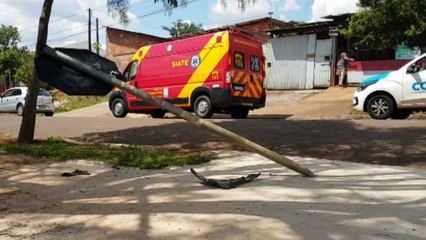 Segundo as informações, o condutor do Gol teria sido fechado por um outro veículo, quando desviou. Com a manobra, o carro subiu à calçada e derrubou a placa de sinalização.