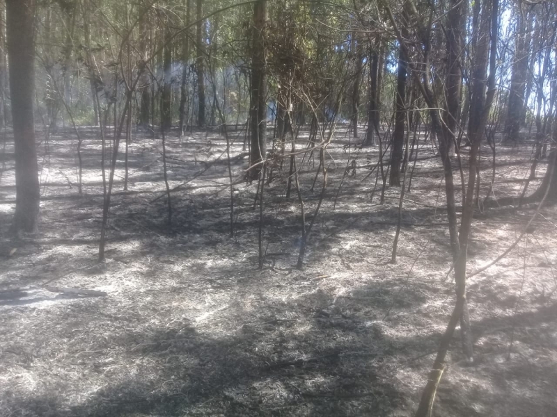 Em seguida uma plantação de eucalipto também foi parcialmente consumida pelas chamas que atingiram cerca de 12.000 m² de vegetação rasteira.