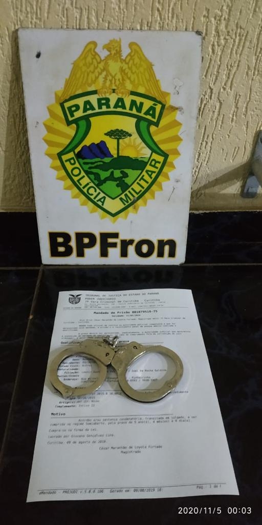 Ao ser consultado nome do então preso de 24 anos, foi constatado em seu desfavor um mandado judicial expedido pela 7° Vara Criminal da cidade Curitiba-PR.