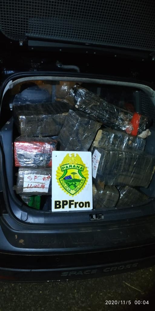 A ação ocorreu quando os polícias abordaram um veículo Citroen C4 Pallas, da cidade de União da Vitória-PR onde em busca veicular foi constatado 25 fardos de maconha que após a pesagem resultaram em 253,500 Kg da substância.