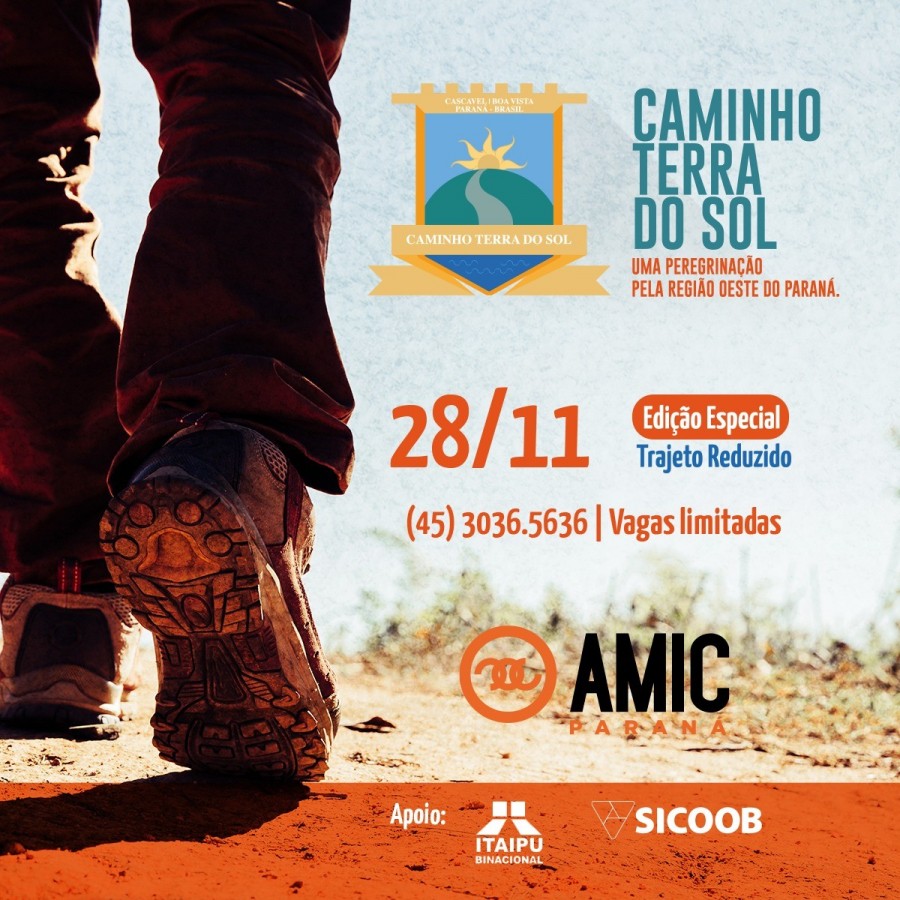 As inscrições para participar do Caminho Terra do Sol, que possui apoio da Itaipu Binacional e do Sicoob Credicapital, deverão ser efetuadas, antecipadamente, pelo telefone da Amic Paraná: (45) 3036-5636. O prazo para inscrição segue até o dia 23 com um custo no valor de R$100,00 para associados e não associados da entidade. Não serão aceitas inscrições após a data estabelecida.