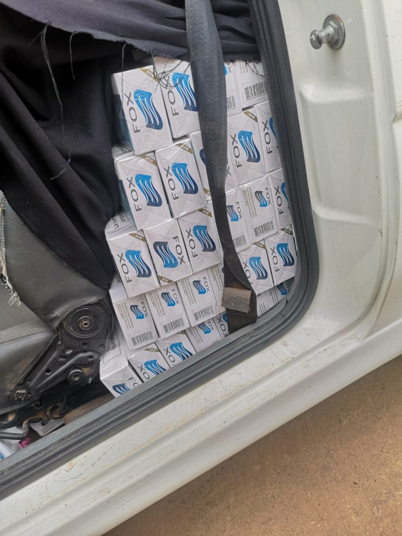 Durante vistoria ao veículo, foi verificado que o mesmo estava aberto, sem chaves, e carregado com cigarros de origem estrangeira, configurando o crime de contrabando. O condutor do veículo não foi localizado até o momento. Ocorrência ainda em andamento, por isso a quantidade de cigarros ainda não contabilizada.
