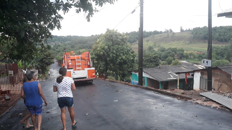 Ao todo foram atendidas a 9 ocorrências de quedas de árvores sendo que três atingiram residências ,19 destelhamentos e um rompimento da rede de alta tensão. Entre os atendimentos os bombeiros também resgataram dois cachorros que teriam ficado presos dentro de contêiner de descarte de resíduos, no centro de coleta e lixo do município.