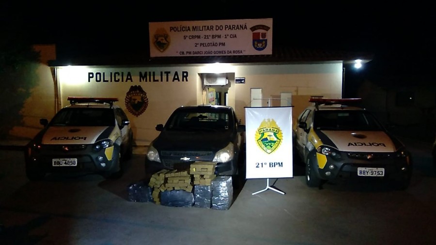 De acordo com a PM, por volta das 3h as equipes policiais realizavam buscas aos ocupantes de um veículo SUV que haviam fugido de uma abordagem em Flor da Serra do Sul, quando avistaram uma GM/Montana. O condutor não obedeceu a ordem de parada e após alguns quilômetros de acompanhamento ele foi abordado no Bairro Alto São Mateus. O condutor informou que estava retornando da casa da irmã, mas apresentou bastante nervosismo.