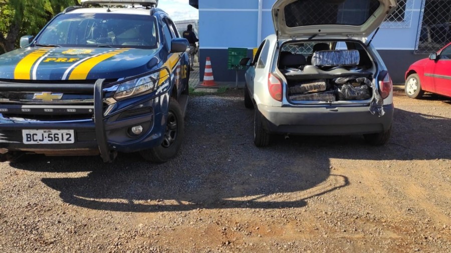 Durante a abordagem, condutor e passageira apresentaram grande nervosismo. Ao mesmo tempo, os policiais notaram grande volume no porta malas do automóvel.