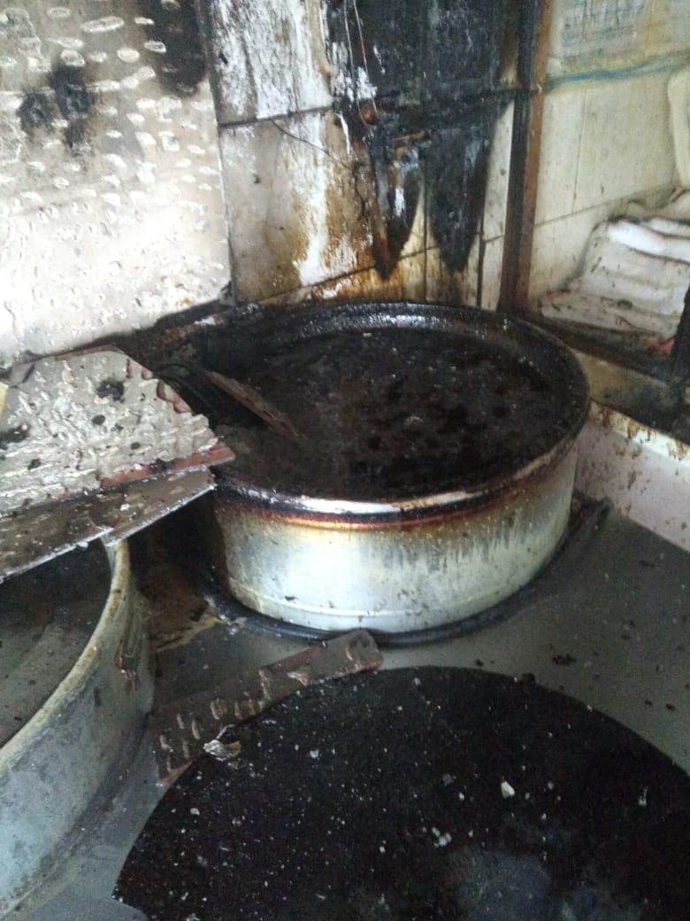Uma fritadeira elétrica foi esquecida ligada, super aqueceu vindo a queimar o óleo, causando muita fumaça no local.