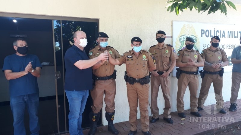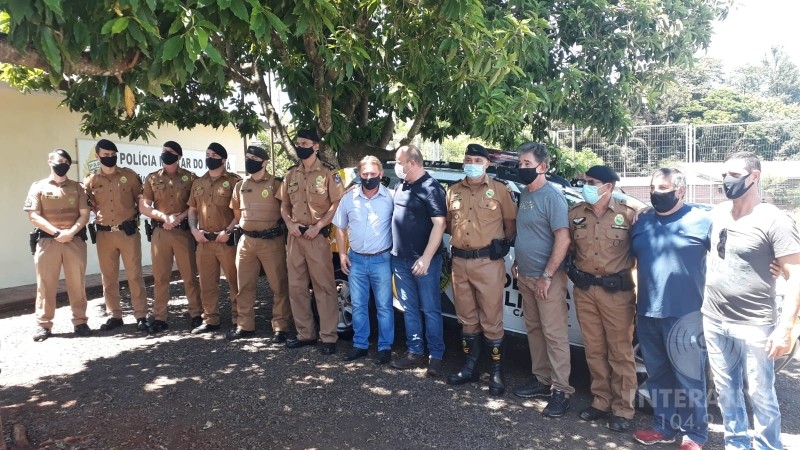 O Major veio realizar a entrega de uma nova viatura para o município, um Renault Duster, que vai beneficiar o município na área da segurança pública. O veículo já vem totalmente equipado para o trabalho ostensivo e preventivo da Policia Militar, com sinais sonoros e luminosos, rádio comunicador, camburão e demais equipamentos de segurança.