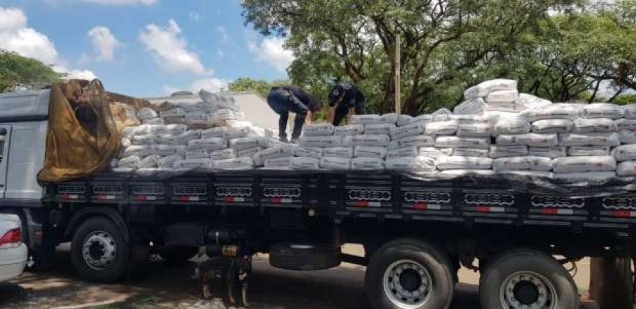 Na ação o cão Kris indicou onde a droga estava escondida em caminhão carregado com farinha.