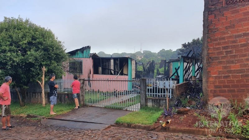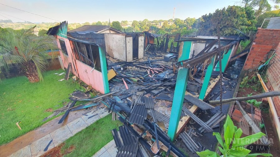 Por se tratar de uma estrutura mista (material e madeira), as chamas consumiram rapidamente a casa, que ficou completamente destruída.