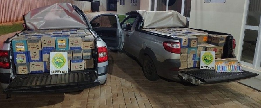 Os condutores foram orientados e liberados. Os produtos e veículos foram apreendidos e encaminhados para a Receita Federal em Santo Antônio do Sudoeste para os procedimentos cabíveis.