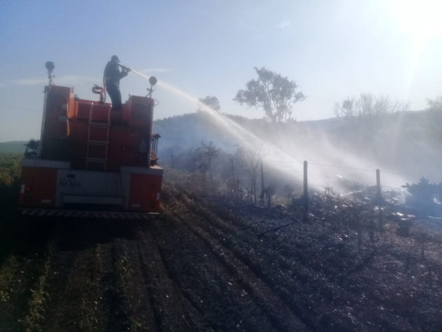 O fogo ocorreu em uma área de vegetação e área de mata na Linha Capanema, próximo ao Frigorifico Scapini.