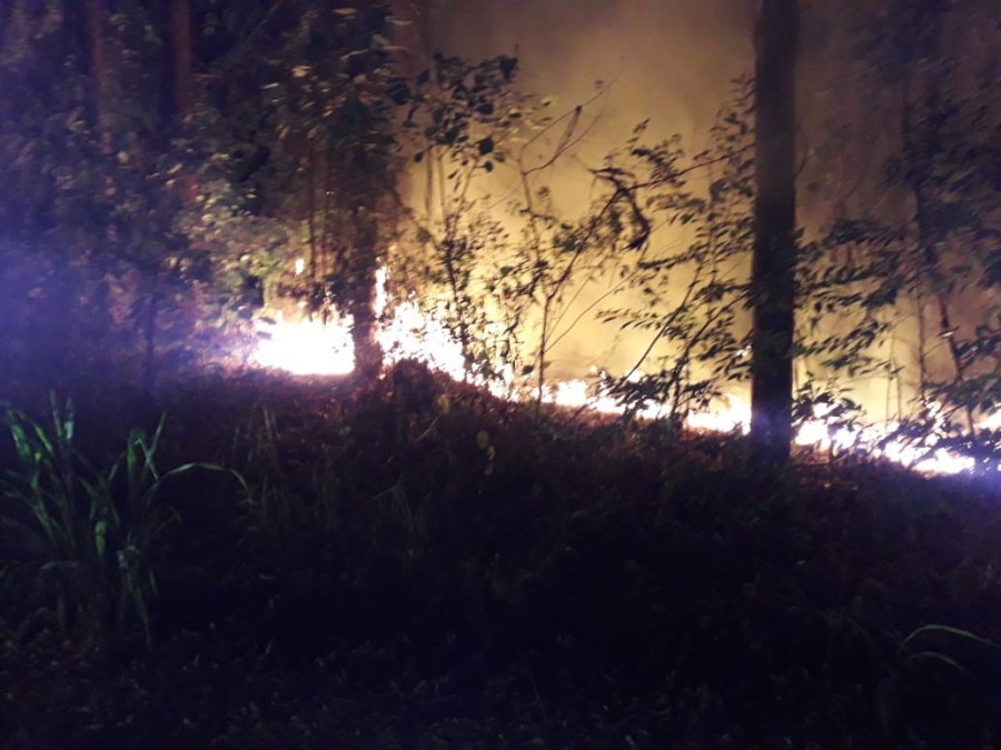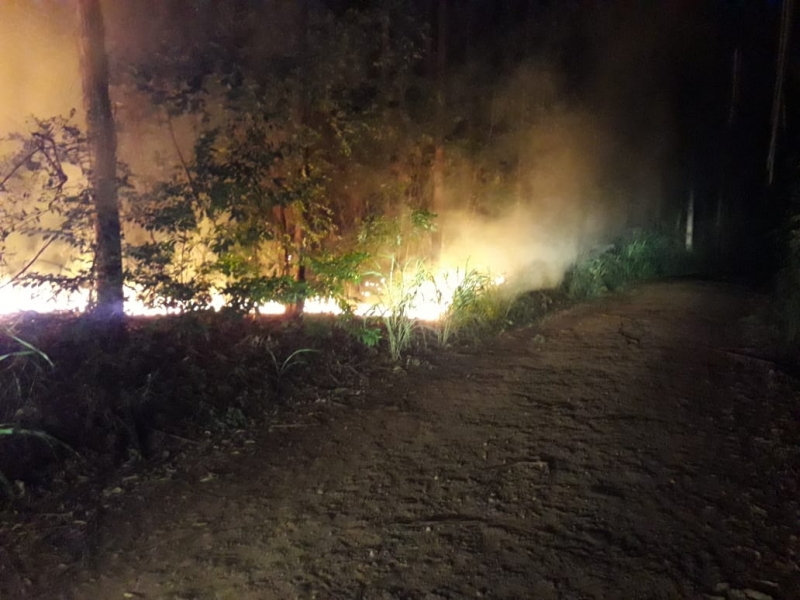 Os Bombeiros de Capitão foram acionados por volta das 22h30min para combater as chamas que se alastravam por uma plantação de eucalipto próximo ao aterro sanitário municipal.