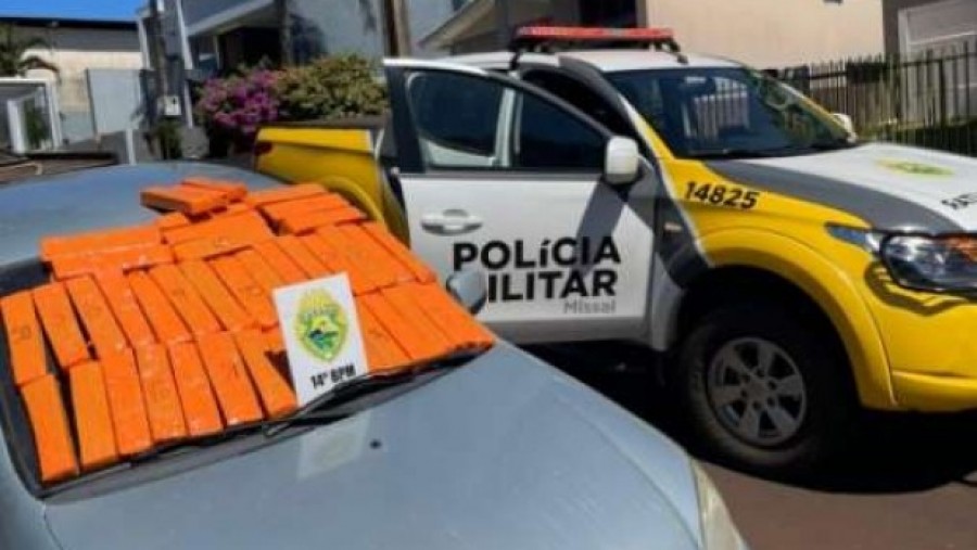 No interior do Celta, foram encontrados diversos tabletes de maconha, que totalizaram 28 quilos.