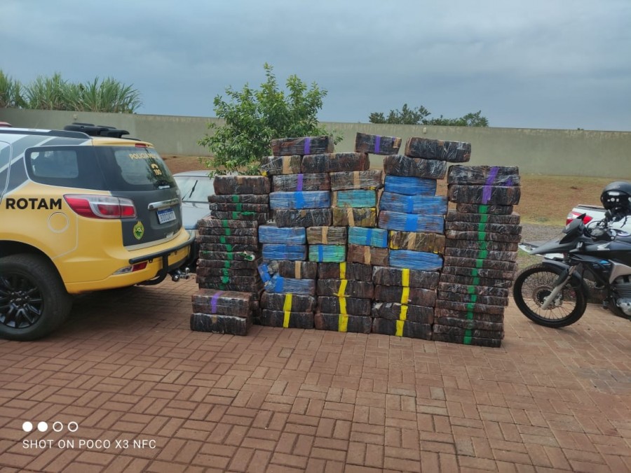 Durante os trabalhos, as equipes efetuaram a abordagem de um veículo carregado de maconha próximo a Diamante D’Oeste. Em continuidade das diligências, foi realizada a apreensão de mais uma grande quantidade de maconha em um sítio na área rural de Santa Helena, de onde o veículo havia saído.