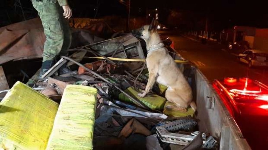 De acordo com as informações repassadas à equipe de reportagem, a cadela 'Atena' participou da ação onde uma carreta carregada com materiais de ferro velho transportava os entorpecentes distribuídos no veículo. O peso da maconha resultou em 514,6 kg divididos em 29 fardos.