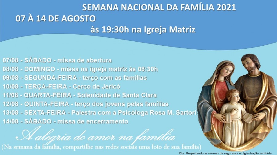 Esta semana é feita em prol do amor e a valorização das famílias, para resgatar os valores da Família.