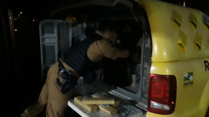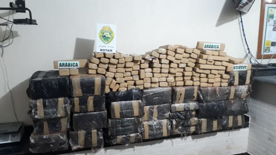 A PM recebeu informações sobre um veiculo caído em uma valeta na PR 484 - próximo do Alto Alegre do Iguaçu, KM 736 da rodovia que liga Capitão Leônidas Marques a Boa Vista da Aparecida. No local os militares encontraram uma S-10 prata abandonada às margens da via, carregada com grande quantidade de maconha na carroceria.
