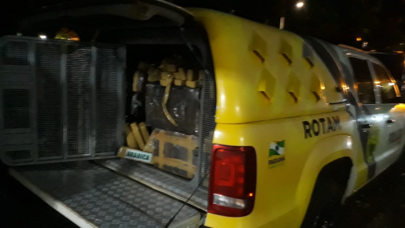 A equipe da ROTAM fez buscas pelo motorista que fugiu do local, mas não conseguiram localizar o responsável pelo entorpecente.