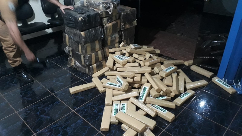 Foram necessários duas viaturas para realizar o transporte da droga que após pesagem, totalizou 490,220 kg.