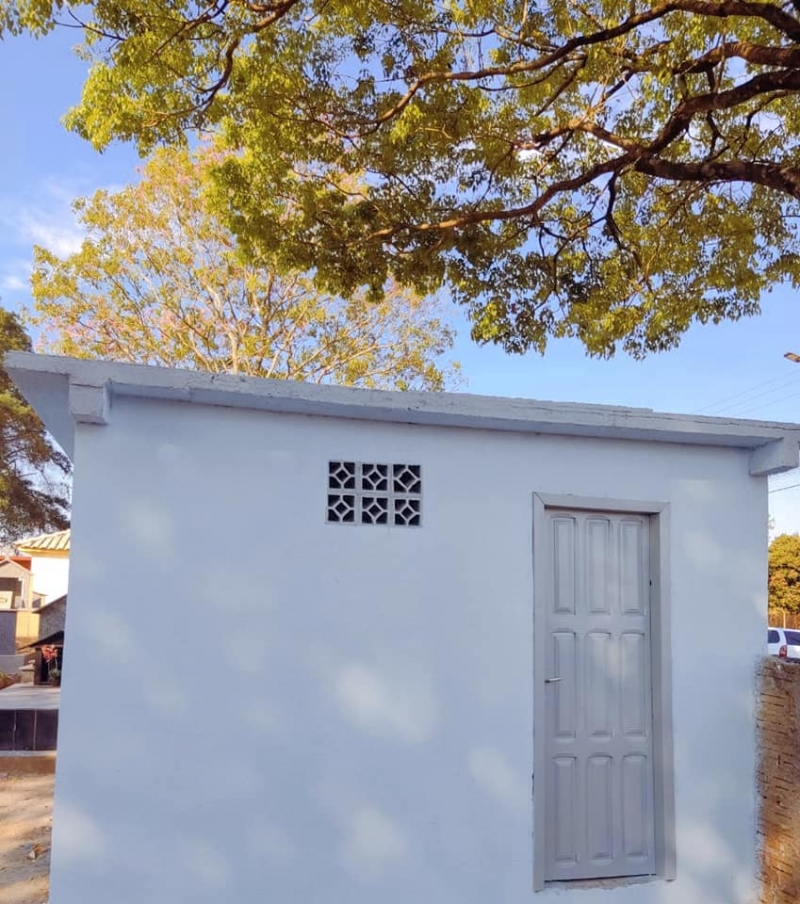 Os banheiros receberam revestimentos, pintura nova. Além disso, o cemitério vem recebendo outras melhorias, como uma camada de pedra brita e acessos melhores para os visitantes e até para o carro funerário.