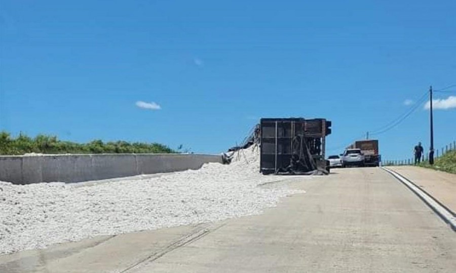 Com o fato, a carga foi derramada na rodovia, deixando uma das pistas parcialmente interditada.