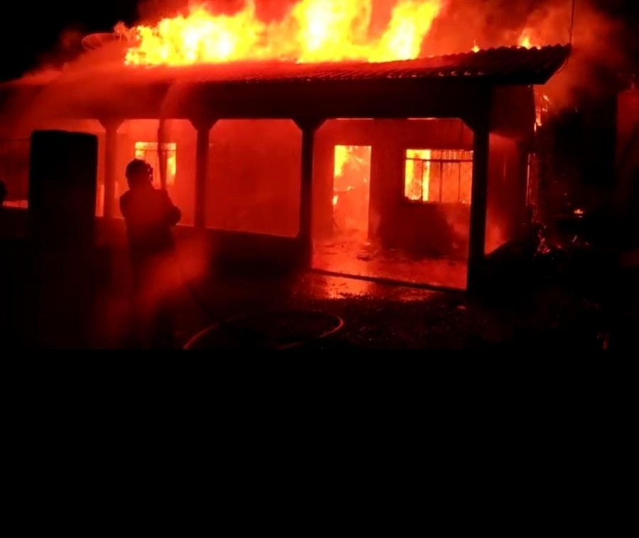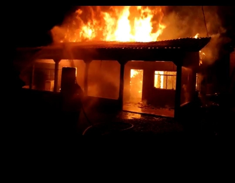 Quando chegaram ao local a residência de madeira já estava tomada pelas chamas. O fogo iniciou na parte da sala. Não havia ninguém na residência.
