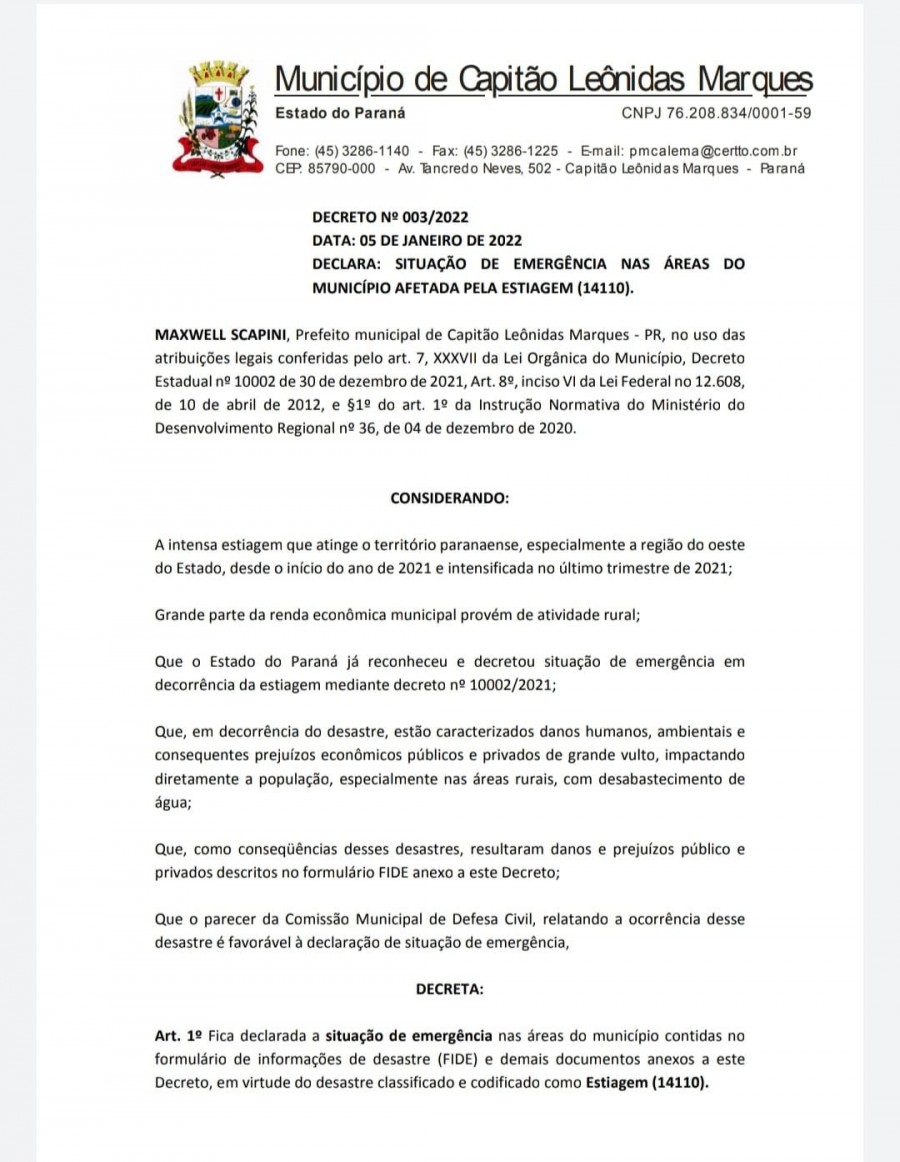 O decreto autoriza a busca de recursos para ações de resposta à estiagem, visando a reabilitação do cenário.