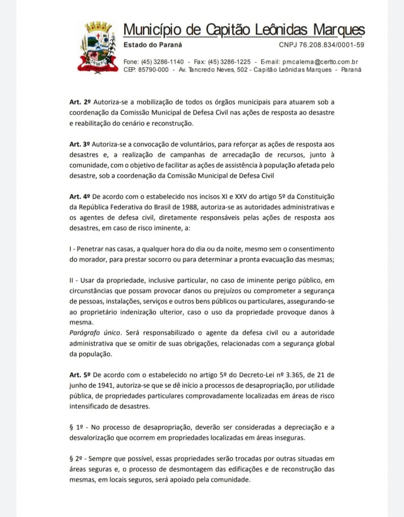 Também estarão dispensados de licitação os contratos de compra de bens, prestação de serviços e obras necessárias às atividades de resposta ao desastre.