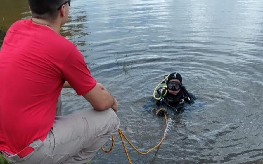 Por volta das 14h40 ele entrou na água que tem cerca de cinco metros de profundidade, quando acabou afundando e não retornando a superfície.