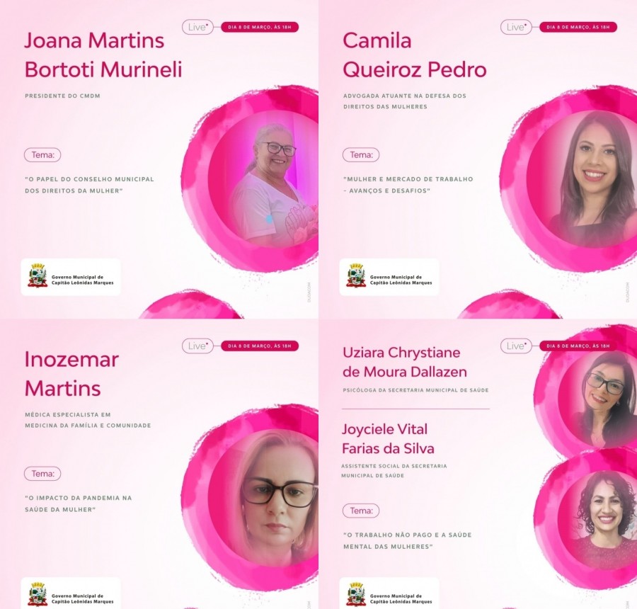 A live será transmitida pelo facebook da Prefeitura Municipal de Capitão Leônidas Marques.