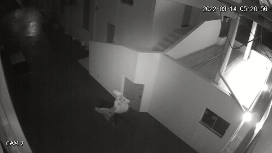 Ação foi flagrada pelas câmeras de segurança, nas imagens é possível perceber que o homem entrou no local às 04h55 pulando o muro de acesso pela rua Cardel, ele abriu uma das janelas do salão paroquial que não tinha sensor de alarme, na sequência e foi para a sala do grupo de jovens, lá ele serrou a corrente que trancava a porta da sala.