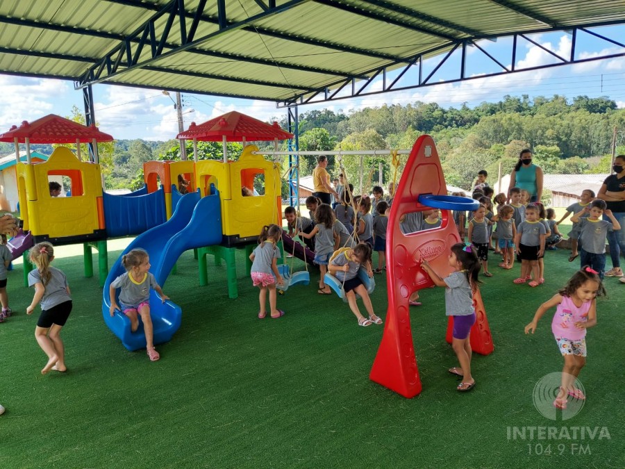 O CMEI já contava com os brinquedos, mas devido ao calor escaldante e também nos dias de chuva, era impossível utilizar aquele espaço no período da tarde, quando os dias não eram tão quentes, os alunos da manhã até conseguiam brincar no espaço.