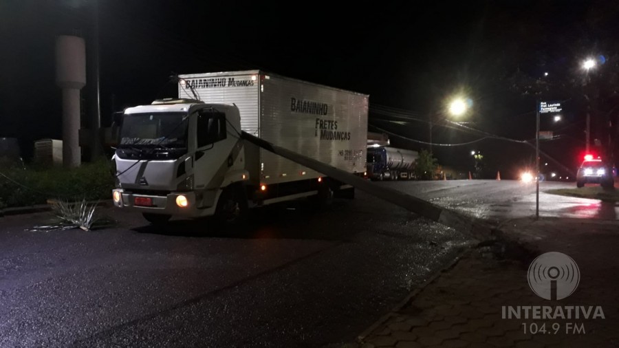 Conforme informações do Baianinho, proprietário do caminhão, ele estaria levando o veículo até o pátio do posto de combustível quando ouviu o barulho na cabine e ao descer pra ver o que teria acontecido, notou que o poste havia caído sobre o veículo, entre a cabine e o baú.