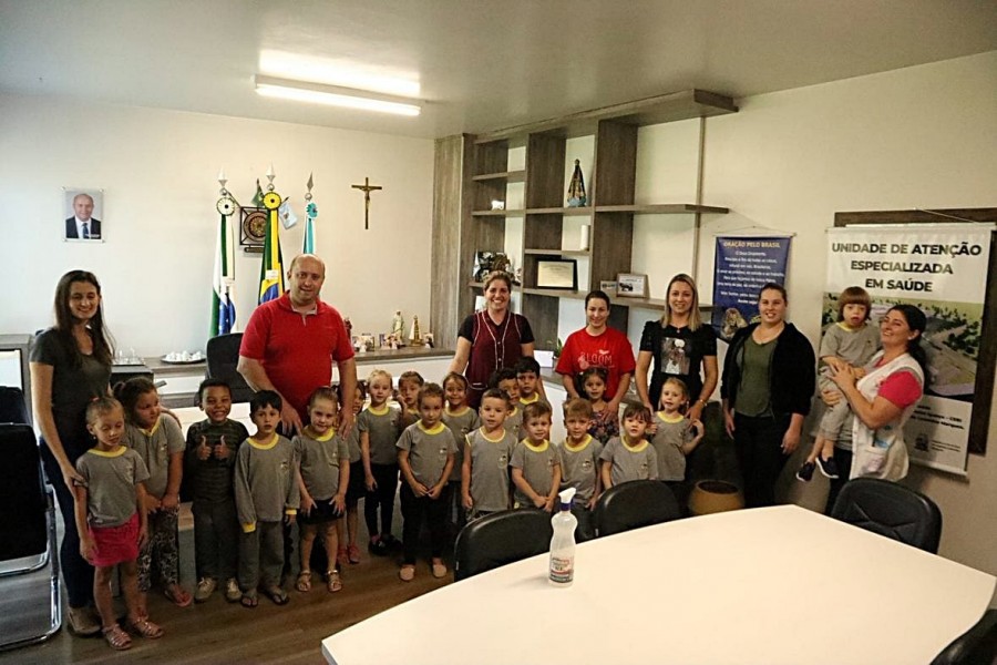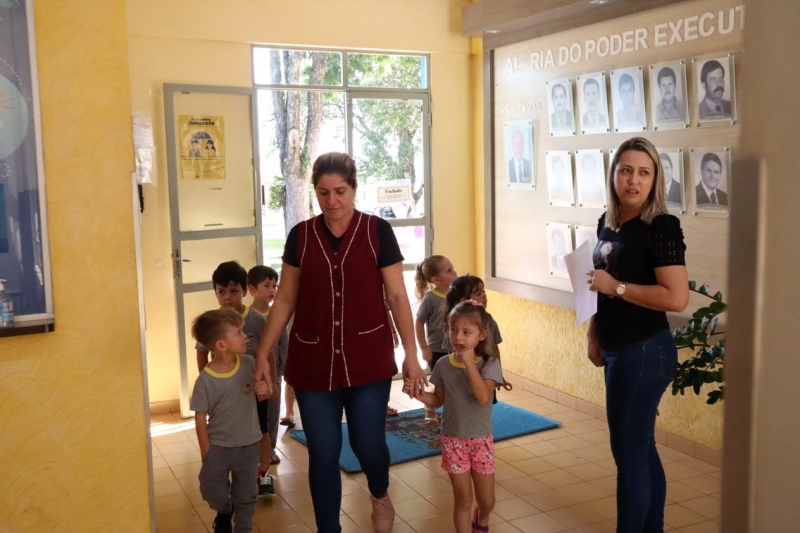 Na última sexta-feira (22) os alunos do CMEI Primavera estiveram na Prefeitura Municipal de Capitão Leônidas Marques conhecendo as dependências do prédio, visitando o gabinete e conversando com o Prefeito Maxwell Scapini, que recepcionou as crianças e respondeu várias perguntas.