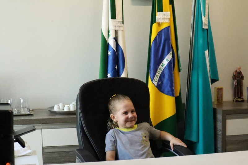 O Prefeito ainda concedeu sua cadeira às que quisessem sentar e fingir, por um dia, que são Prefeitos e Prefeitas do município.