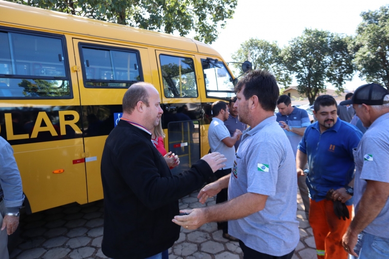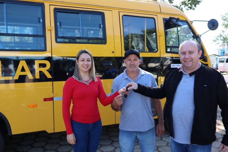 O Prefeito Maxwell Scapini e a Secretária de Educação, Francieli Hubner, entregaram as chaves dos veículos aos motoristas.