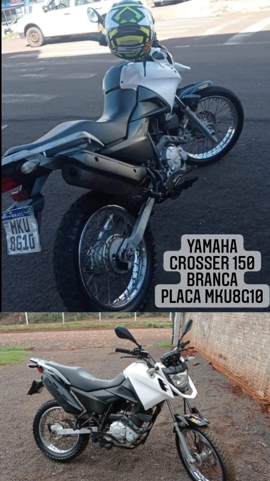 A motocicleta tem ano 2014, placa MKU-8G10 e cores preto e branco.