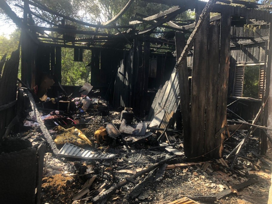 Uma casa de madeira, de aproximadamente 60 metros quadrados, foi completamente consumida pelo fogo.
