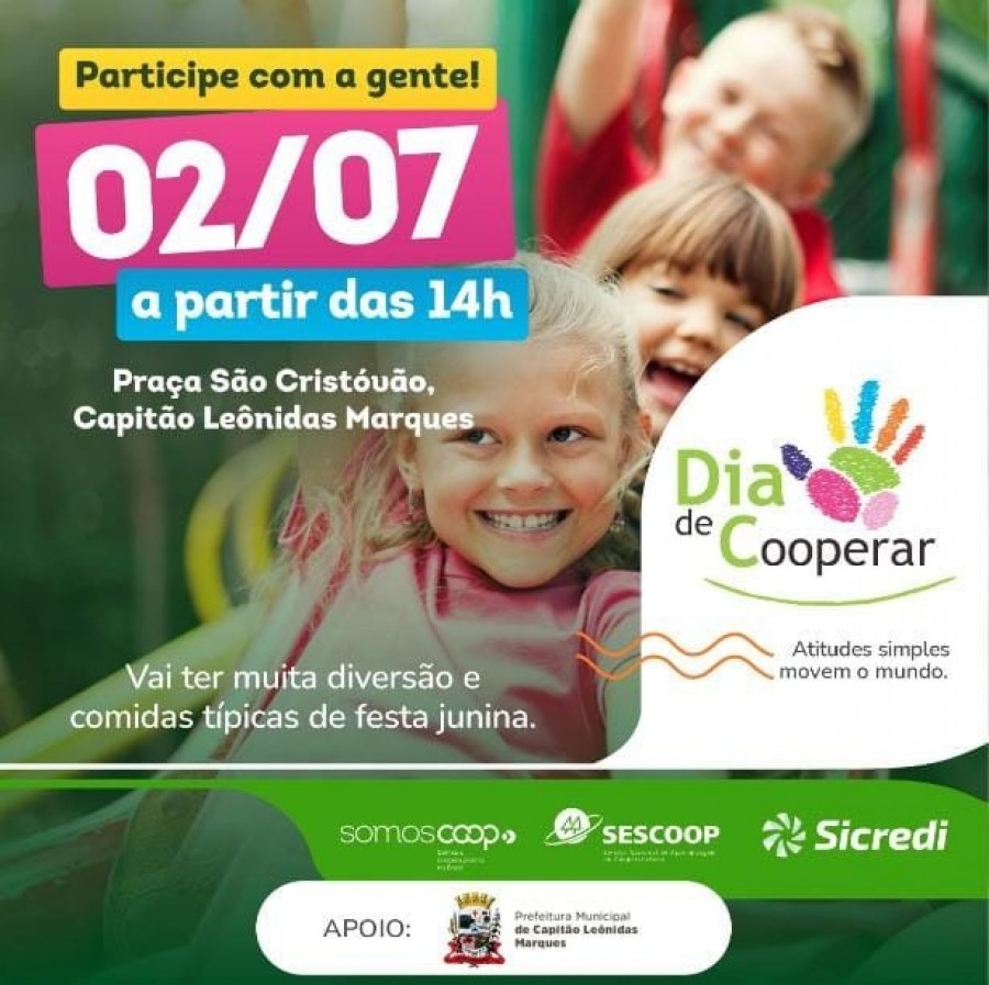 O evento contará com muita brincadeira para as crianças, muita diversão e também com as comidas típicas de festa junina. O dia C será aberto para toda a comunidade, por isso leve seus filhos e amigos para terem um dia especial. O Sicredi conta com a ajuda de vários apoiadores e também da Prefeitura Municipal de Capitão Leônidas Marques.