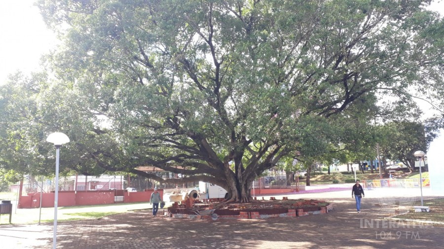 O canteiro que havia ao redor da árvore estava cedendo e por isso foi retirado para dar lugar a um novo canteiro que está sendo construído pelos próprios funcionários da Secretária de Obras de Capitão.