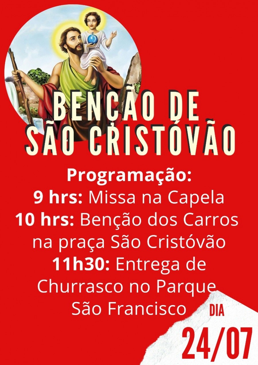 Às 10h – inicia a Benção dos carros na Praça São Cristovão.